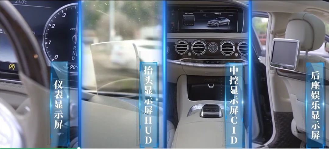 车载显示屏。当下主要可分为四大类:仪表显示屏、抬头显示屏(HUD)、中控显示屏、后座娱乐显示屏。